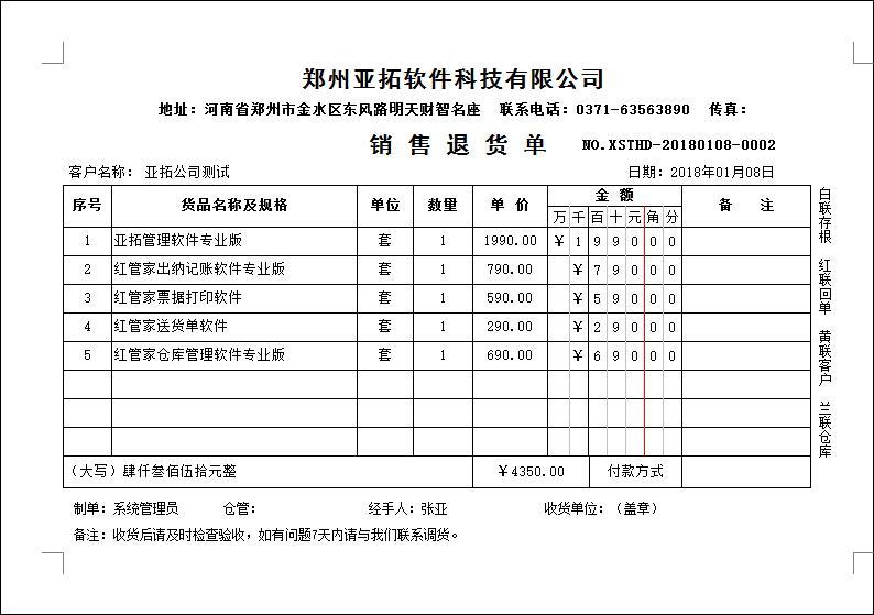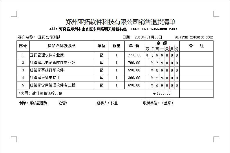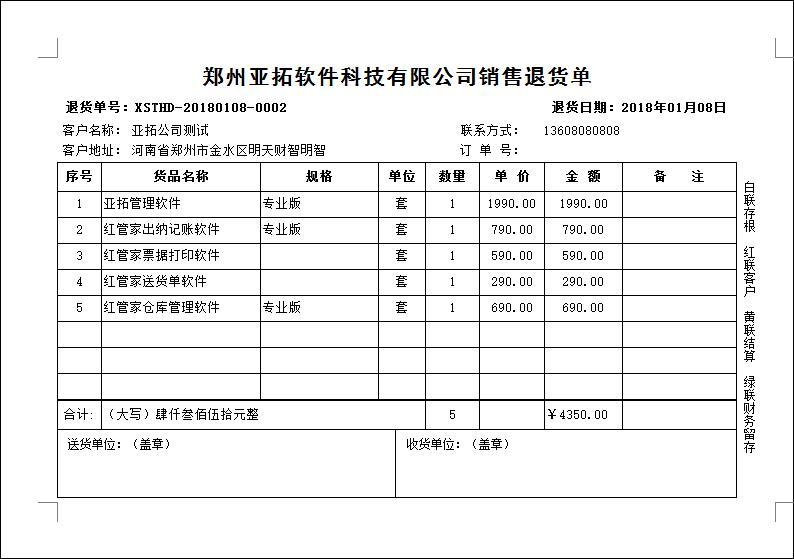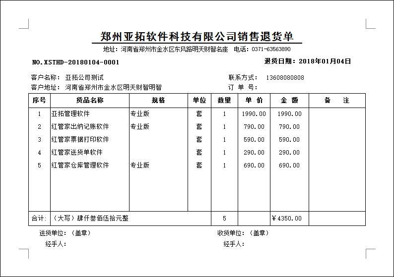• 銷售退貨單打印模板(B05)