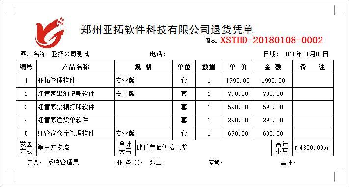 • 銷售退貨單打印模板(B04)