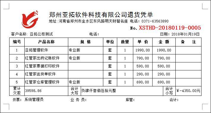 • 銷售退貨單打印模板(B10)