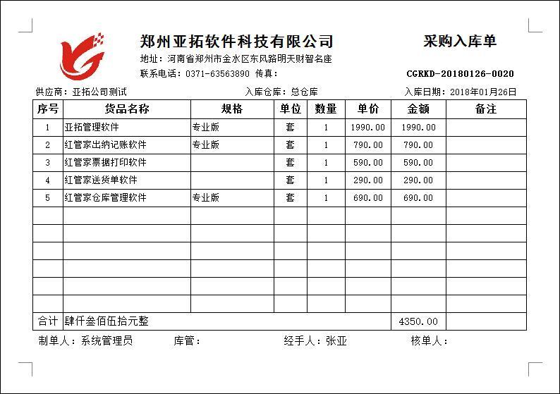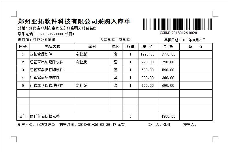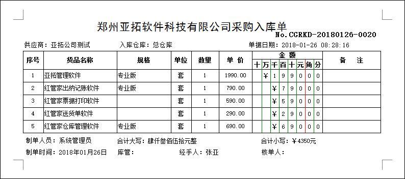 • 采購入庫單打印模版(B01)