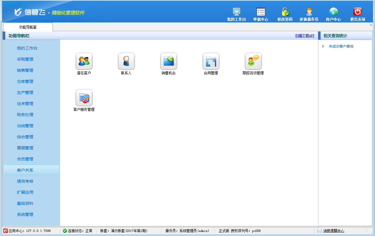 包括功能:潛在客戶管理、聯系人管理、銷售機會管理、合同管理、跟蹤回訪管理、客戶服務管理等功能。