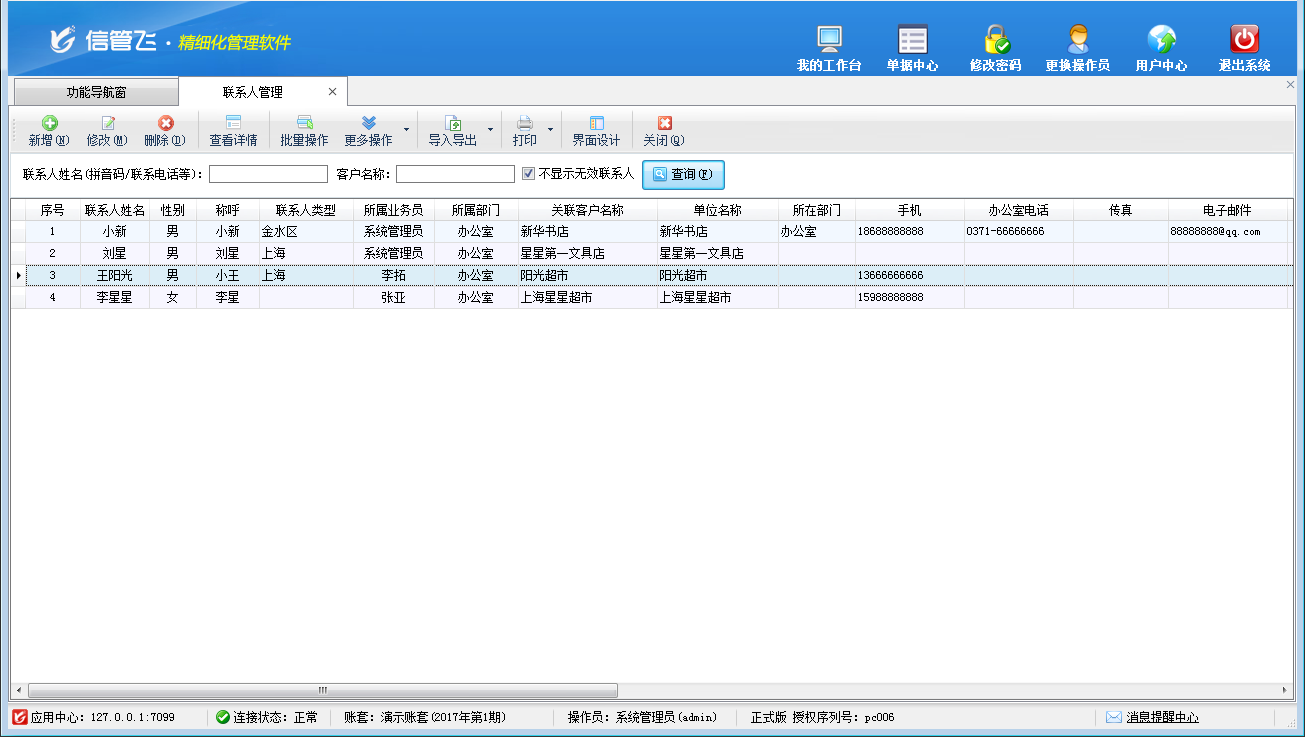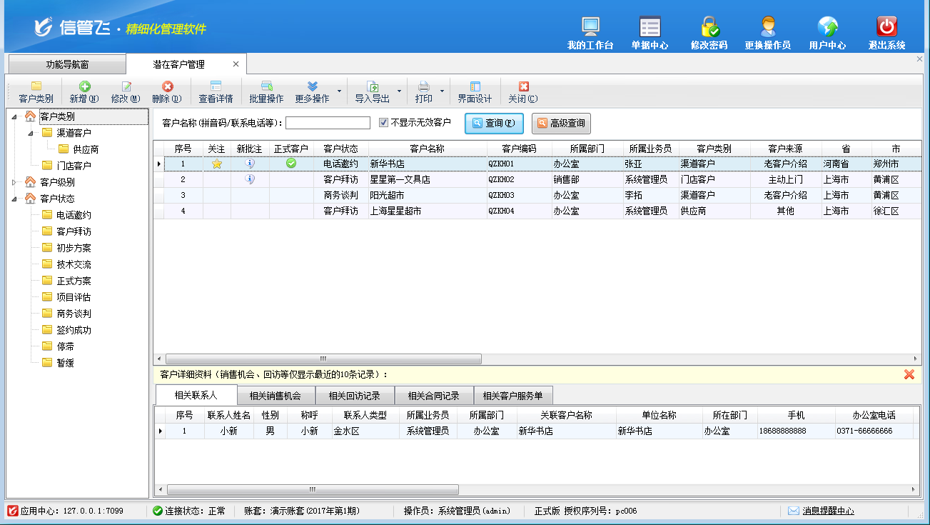 客戶關系管理的典型功能截圖如下: