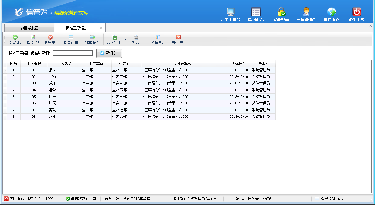 功能描述:生產工序管理用于管理整個生產過程中各工段加工產品的次序,材料經過各道工序,最終加工成成品。通過對整個生產活動的分階段進行管理,使各階段銜接的良好有序,從而可以提高產品質量和勞動生產率。