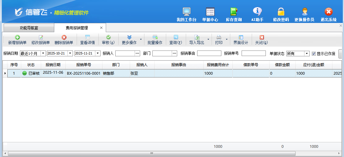 注:還款單管理可以增加費用報銷單來進行統一管理。