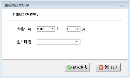 生成績(jī)效考核單:點(diǎn)擊“生成考核單”按鈕,可以彈出生成績(jī)效考核單窗口,在此窗口可以選擇年度、月份及相應(yīng)的生產(chǎn)班組,然后點(diǎn)擊“確認(rèn)生成”按鈕即可生成相應(yīng)的績(jī)效考核單,如圖所示: