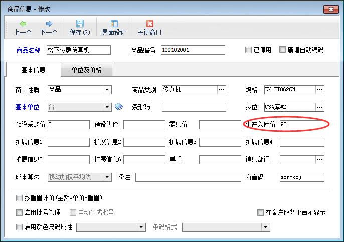 入庫單價:進入倉庫的成本價,軟件默認取商品信息中的“生產入庫價”,也可以設置為根據原料金額和直接費用等核算出成本價。