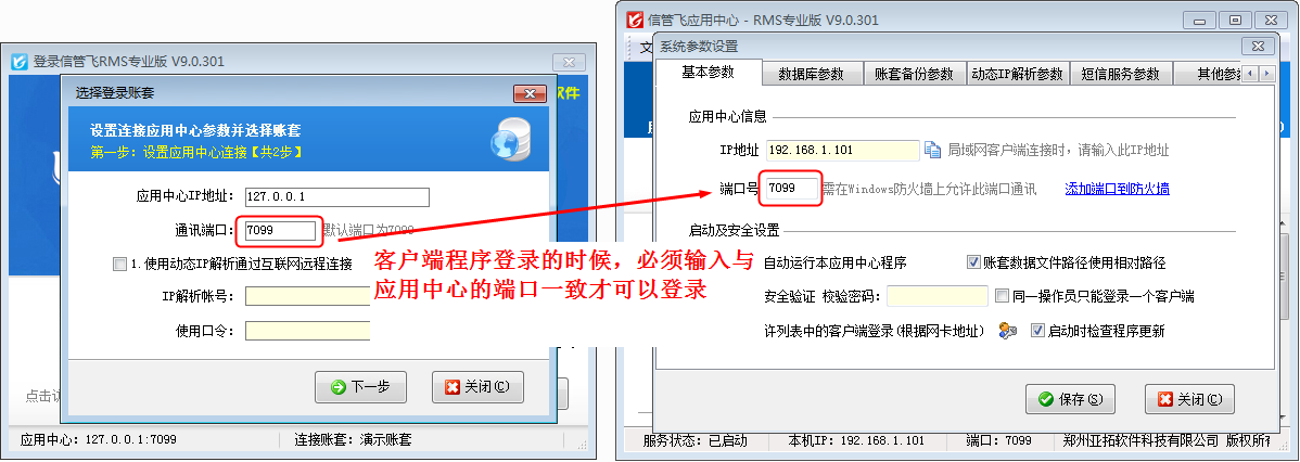 ????應(yīng)用中心程序只需要在作為主機的電腦上安裝和運行,客戶端程序(即信管飛 RMS 等)連接應(yīng)用中心,實現(xiàn)數(shù)據(jù)訪問和存取。因此,使用軟件前必須打開主機電腦,并運行應(yīng)用中心程序,才可以登錄軟件。