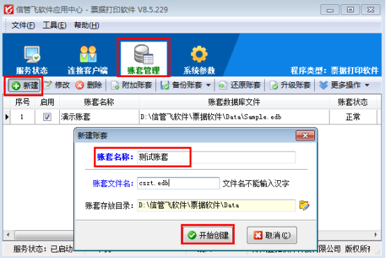 ????賬套即賬套數據庫,這是一個會計業務引申出來的概念,賬套數據庫中存儲業務數據。使用軟件之前建議新增加一個賬套,用于重新錄入和管理數據,信管飛RMS、信管飛倉庫管理軟件、信管飛送貨單軟件、信管飛出納記賬軟件、信管飛票據打印軟件等軟件的賬套都是在主機電腦的應用中心程序上集中管理的,下面我們以信管飛票據打印軟件為例詳細介紹下在使用軟件之前如何新增加一個賬套?
