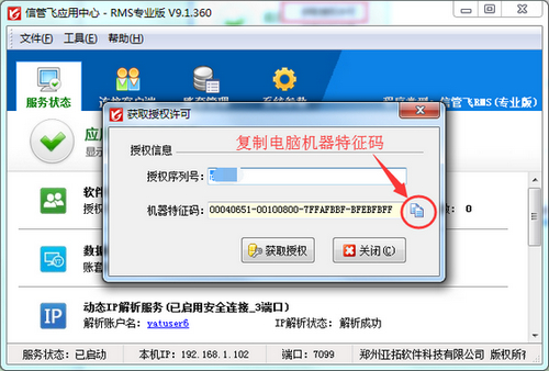 ????動態IP解析服務是亞拓軟件開發的基于互聯網的遠程連接解決方案,采用專屬安全技術,可以支持網絡版本在異地連接主機電腦進行共享數據使用。動態IP解析服務屬于增值服務,使用需要另外進行購買,購買后會分配解析賬號、管理密碼和使用口令信息,管理密碼和使用口令可以自己修改。下面我們以信管飛RMS為例介紹一下如何修改動態IP解析服務的管理密碼及使用口令。