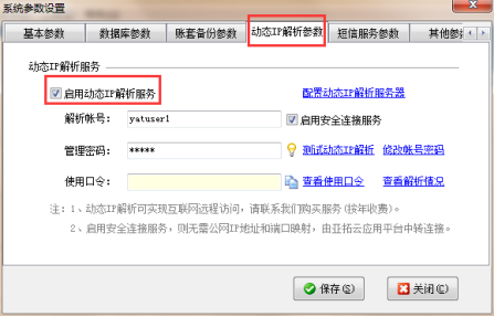 ????此連接需要購買動態(tài)IP解析服務(wù),在電腦端應(yīng)用中心啟用動態(tài)IP解析服務(wù)后,手機(jī)APP登錄界面點擊選擇賬套,勾選上啟用動態(tài)IP解析,輸入解析賬號和使用口令,點擊“下一步”選擇賬套登錄,如下圖所示: