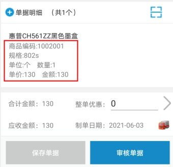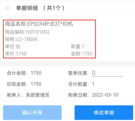 ????電腦端界面設(shè)計設(shè)置完成后,登錄手機(jī)APP,重新打開單據(jù),可看到單據(jù)明細(xì)上已顯示“折扣率和折扣單價”,如下圖所示:
