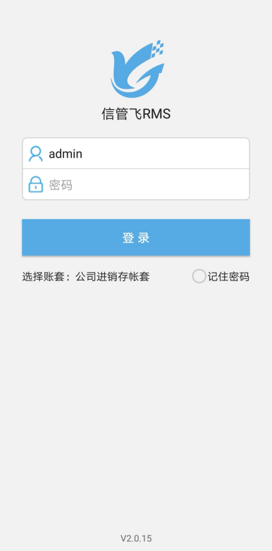 ????設(shè)置完成后,信管飛RMS的APP登錄軟件后退出,再次打開登錄頁面,就不再顯示“演示試用”功能按鈕。如下圖所示: