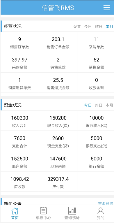 ????信管飛RMS支持手機(jī)APP登錄進(jìn)行業(yè)務(wù)開單、庫存查詢等操作,另外在APP首頁也可以查看經(jīng)營狀況及資金狀況,如下圖所示。如果需要設(shè)置操作員賬號登錄不可在APP首頁查看資金狀況,如何設(shè)置呢?下面詳細(xì)介紹一下操作過程。