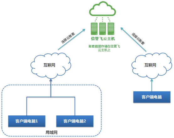 ????云應用模式(云賬套)是亞拓軟件推出的一種在線應用模式,軟件賬套數據存儲在信管飛云主機上,可以隨時隨地使用軟件。