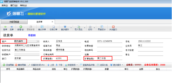 信管飛送貨單軟件、信管飛RMS軟件、信管飛倉庫管理軟件等可以在軟件使用前維護好商品信息,方便開單直接選擇,有客戶存在商品信息除單位、編碼、規格外還有固定的商品型號,軟件的商品信息維護界面支持擴展信息,可以把固定的商品型號內容輸入在擴展信息中。 演示視頻觀看鏈接:送貨單軟件開單界面如何顯示商品的擴展信息? 新開送貨單界面單據明細欄默認顯示內容沒有型號,本文以“信管飛送貨單軟件”為例,示范下在開單界面如何顯示出商品的擴展信息內容。