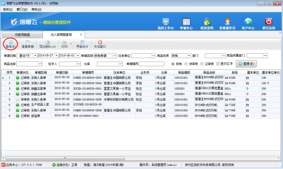 信管飛RMS和信管飛倉庫管理軟件都可以對倉庫信息進行管理,都可以查詢商品庫存數量。軟件可以統計商品出入庫的明細情況,對商品出入庫情況一目了然。本篇文章以信管飛倉庫管理軟件為例介紹一下如何查詢商品出入庫明細。 在功能導航窗點“倉庫管理”—》“相關查詢統計”—》“出入庫明細查詢”,即可進入商品出入庫明細查詢界面,如下圖所示:圖1 圖2 在出入庫明細查詢界面,點擊“查詢”進行統計商品庫的出入庫明細情況。可以匯總一定時間段內每種商品的出入庫明細記錄,可以按照單據類別、商品類別、商品性