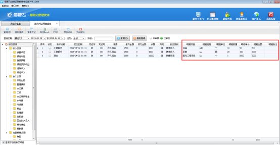 信管飛出納記賬軟件、信管飛RMS標準版和專業版在新增出納憑證時都支持錄入憑證明細,方便用戶錄入每個憑證的明細內容(系統默認沒有啟用憑證明細功能,啟用方法請參考:出納憑證如何啟用憑證明細功能?),軟件支持對憑證明細進行查詢統計,本篇文章以信管飛出納記賬軟件專業版為例詳細介紹一下如何查詢出納憑證明細。 在功能導航窗點“出納管理”—》“銀行日記賬”,新增憑證界面點擊“憑證明細”,可以添加憑證明細內容,如圖1所示:圖1 在功能導航窗點“出納管理”—》“出納憑證明細查詢”,進入出納憑證明細查詢界