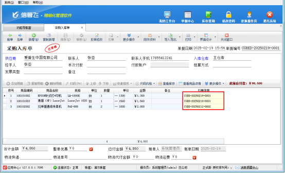 在快節奏的現代商業環境中,采購管理的效率與準確性直接關系到企業的供應鏈穩定性和成本控制。為此,我們自豪地推出了一款全新的進銷存管理軟件功能——采購入庫單批量引單采購訂單,旨在為您的采購管理帶來前所未有的便捷與高效。 批量引單,一鍵操作 我們的軟件在采購入庫單引單界面實現了重大突破,支持批量選擇采購訂單。用戶只需在采購入庫單界面輕點“引單”按鈕,即可瞬間調出所有待入庫的采購訂單。通過直觀的多選操作界面,您可以輕