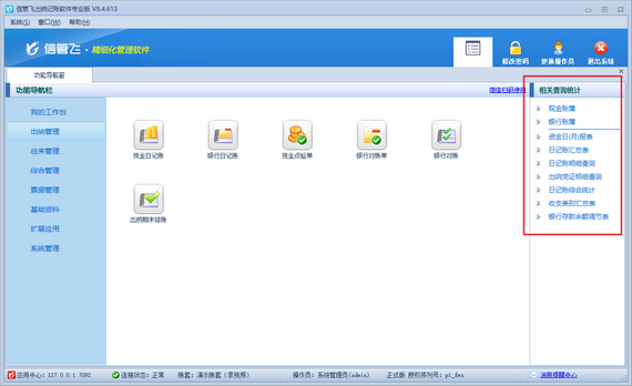 信管飛出納記賬軟件是一款集現金/銀行日記賬、應收應付款管理、工資管理、發票管理等為一體的綜合性財務出納管理軟件,有用戶在使用軟件時,系統管理員賬號登錄軟件可以看到日記賬憑證,但是操作員賬號登錄軟件確無法查看憑證,如下圖所示。 出現以上問題的原因是:操作員賬號沒有查看其他人員錄入的出納憑證的權限。 解決方法如下:使用系統管理員賬號登錄軟件,在功能導航窗點擊“系統管理”—》“操作員及授權”打開操作員管理及授權界面,選擇操作員賬號,在“其他操作權限”界面將