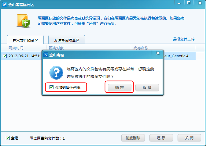 近期,我司陸續接到一些客戶反饋,紅管家送貨單軟件無法運行,一運行就被金山毒霸等殺毒軟件視為木馬病毒直接刪除。經過與金山網絡聯系,我司已經在金山安全認證平臺提交安裝包供檢測,所有安裝包都檢測無毒無木馬。在此,亞拓軟件鄭重承諾,我司所有軟件絕無病毒木馬,除需要聯網更新和驗證正版外(僅向服務器上傳用戶編號,共4個字節),后臺不進行其他任何操作。目前金山毒霸等軟件視為危險行為,主要是因為導航窗為內嵌瀏覽器導致。 如果遇到這種情況,可把送貨單軟件可執行文件設置為信任即可,方法如下: