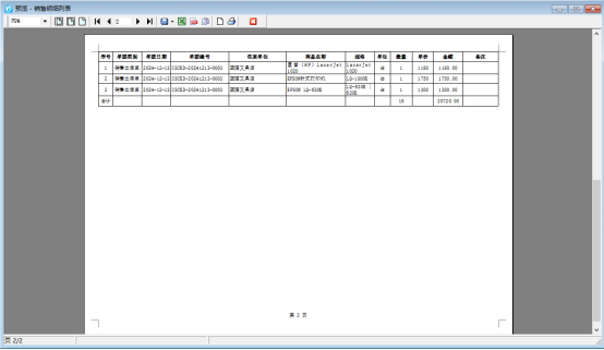 信管飛軟件支持自定義打印模板打印樣式,軟件內置的有多種打印模板,在統計單據時可以設置根據某一項數據分組統計,本文介紹打印模板如何設置分組打印? 以銷售單明細查詢界面為例,按照往來單位設置分組顯示打印銷售明細,未設置時打印預覽如下顯示: 在銷售單明細查詢界面點擊打印---打印格式設計,選中模板點擊設計格式;進入模板設計器,在模板設計器界面點擊“插入邊條”,選擇分組標頭,分組標頭高度設置為0,如下 雙擊分組