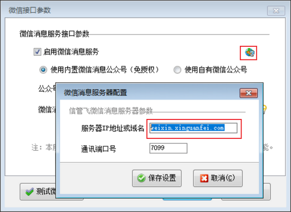 微信消息服務是信管飛軟件基于微信開放平臺研發的業務消息發送服務,支持即時推送業務單據消息,如訂單通知、發貨信息等。支持客戶查看消息詳情(可配置外部查看數據項)、單據簽收確認、分享轉發等功能。 推送微信消息接收人員支持推送給業務員、客戶,業務員和客戶綁定操作支持在基礎資料“客戶信息”和“員工信息”中獲取綁定二維碼發送綁定,也可以直接開單界面“更多操作”下發送微信消息處點擊邀請客戶綁定微信,獲取綁定二維碼發送客戶進行綁定。 有用戶在進行業務員和客戶綁定操作時,綁定出錯,系統彈出提示信息“調