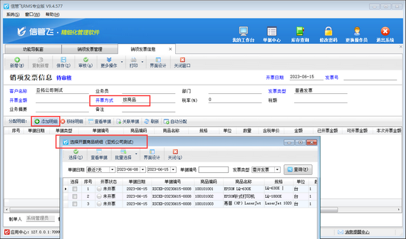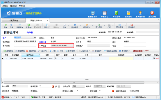 信管飛RMS軟件、信管飛送貨單軟件、信管飛倉庫管理軟件等在開銷售單時客戶名稱可以直接輸入,也可以通過選擇錄入,開單保存審核后,之前版本不允許修改往來單位名稱,造成客戶名稱輸入錯誤后只能重新開單,最新版已更改為審核后允許修改往來單位名稱和倉庫,如下圖所示:【注意】 修改往來單位名稱和倉庫后,對應的應收應付款記錄和倉庫庫存會自動更新。 應收款管理中開對應結算單的銷售出庫單不允許反審修改,需要修改先紅沖對應的結算單記錄。 需要使用此