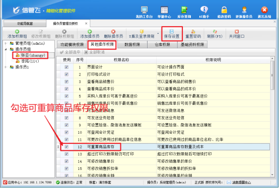 此文章相關(guān)演示視頻:操作員無法重算庫存成本,如何解決演示視頻 在企業(yè)運(yùn)營里,倉庫就像物資流轉(zhuǎn)的“心臟”,其管理效率直接關(guān)乎企業(yè)的運(yùn)營成本與市場競爭力。倉庫庫存查詢,通過實(shí)時更新庫存數(shù)據(jù),提供準(zhǔn)確的庫存信息,幫助企業(yè)隨時掌握商品庫存動態(tài)。然而在使用過程中,偶爾會遇到商品庫存數(shù)據(jù)不對的情況,這時系統(tǒng)自帶的重算庫存功能就能派上用場,它能重新梳理庫存數(shù)據(jù),讓數(shù)據(jù)恢復(fù)正常。但有些用戶在點(diǎn)擊重算時,會彈出“您沒有重算商品庫存的權(quán)限,請與系統(tǒng)管理員聯(lián)系!”的提示