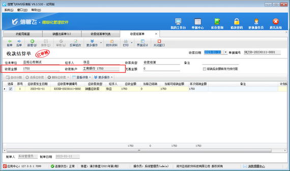 演示視頻觀看鏈接:http://www.mchost.com.cn/news/video/202301/1859.html 收款結算單可用于登記收款信息,并結銷應收款記錄,信管飛軟件支持在開銷售出庫單時直接輸入本次收款金額,銷售出庫單審核后軟件會自動生成收款結算單并結銷該單據產生的應收款。 如修改收款結算單時提示:“當前結算單是由業務單據生成的,不能反審修改”該如何操作?如下圖所示,本篇文章示范下操作步驟。 打開收款結算單界面,在工具欄更多操作下點擊“查