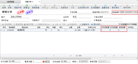 信管飛RMS軟件支持新開銷售出庫單引用銷售訂單,但是部分用戶在使用信管飛RMS軟件的過程中不知道銷售退貨單如何引用銷售訂單,下面具體介紹下信管飛RMS軟件退貨單中如何引用新增訂單? 首先先開一個銷售訂單,保存并審核,如下圖所示: 在功能導航窗點擊“系統管理”—》“系統參數配置”,進入系統參數配置界面,點擊“業務參數”,勾選“銷售(采購)退貨單可引用訂單”參數,點擊保存按鈕,如下圖所示: 在功能導航窗點擊