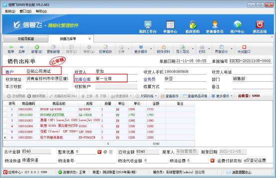 信管飛RMS軟件、信管飛送貨單軟件、信管飛倉庫管理軟件開單界面單據(jù)保存后默認單據(jù)日期和單據(jù)編號是當天的。有些客戶需要提前開單,第二天直接出庫,這種情況該如何處理呢?軟件支持提前錄入單據(jù)。下面以信管飛送貨單軟件為例,演示下如何提前開單? 在功能導航窗點擊“業(yè)務處理”—》“新開送貨單”打開送貨單,錄入單據(jù)信息。如下圖所示: 送貨單界面,修改單據(jù)日期為2021年11月9日,錄入單據(jù)主體和單據(jù)明細信息,點擊保存按鈕后,會彈出提示“當前輸入的單據(jù)日期【2021-11-09】大于當前系統(tǒng)日期【202