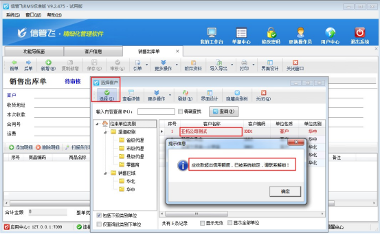 信管飛RMS軟件包含應(yīng)收應(yīng)付款功能,可對客戶和供應(yīng)商設(shè)置應(yīng)收應(yīng)付信用額,客戶在信用額度內(nèi)可先收貨后付款,對于超過信用額度的客戶,軟件支持在基礎(chǔ)資料—“客戶信息”中設(shè)置鎖定功能,不允許繼續(xù)開單,付款后可進(jìn)行解鎖。本文以“信管飛RMS標(biāo)準(zhǔn)版為例”,示范下如何鎖定超出信用額度的客戶。超出信用額度的客戶“亞拓公司測試”在未設(shè)置鎖定前,開銷售出庫單審核單據(jù)會提示“當(dāng)前往來單位將會超出應(yīng)收信用額度,是否繼續(xù)”,點(diǎn)擊“是”仍可以保存成功,如下圖所示: 在功能導(dǎo)航窗點(diǎn)擊“基礎(chǔ)資料”—》“客戶信息”,在客戶信息界面選擇客戶“亞拓公司測試”,選擇工具欄“更多操作”下