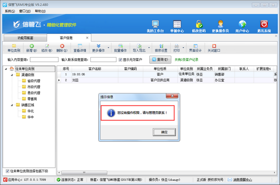 信管飛RMS(進(jìn)銷存管理軟件)中支持設(shè)置往來單位應(yīng)收應(yīng)付信用額度,客戶在信用額度內(nèi)可先收貨后付款,對于超過信用額度的客戶,系統(tǒng)支持鎖定功能,已被系統(tǒng)鎖定的客戶,不允許繼續(xù)開單,付款后可進(jìn)行解鎖。另外,軟件也支持設(shè)置操作員不可鎖定解鎖往來單位,本文介紹一下進(jìn)銷存管理軟件如何設(shè)置操作員不可鎖定解鎖往來單位權(quán)限? 在功能導(dǎo)航窗點(diǎn)“系統(tǒng)管理”—》“操作員及授權(quán)”即可進(jìn)入“操作員管理及授權(quán)”界面,選中操作員賬號,在“其他操作權(quán)限”界面將“可鎖定解鎖往來單位(客戶、供應(yīng)商、物流快遞)”權(quán)限打鉤取消,然后保存權(quán)限設(shè)置,如下圖所示,設(shè)置