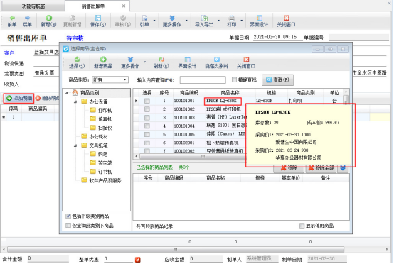 信管飛送貨單軟件、信管飛RMS軟件和信管飛倉庫管理軟件開單時都支持選擇系統已錄入的商品信息,進行快速選擇商品來開單。開單時,選擇商品窗口,可以根據商品編碼、商品名稱、規格、條形碼等信息查詢商品,如果商品種類和商品名稱比較多,我們可以根據商品類別進行查詢。下面我們介紹一下在信管飛送貨單軟件中開送貨單選擇商品時,根據“商品類別”查詢商品的操作步驟。 在功能導航窗點“業務處理”—》“新開送貨單”即可進入“送貨單”界面。在送貨單界面,點擊“添加明細”按鈕,系統彈出“選擇商品”窗口,如圖所示: