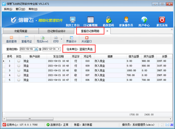 出納記賬軟件登記日記賬憑證時可以錄入往來單位信息,方便后續根據往來單位進行查詢統計數據,本篇文章介紹一下出納記賬軟件中如何按往來單位統計? 在功能導航窗點擊“出納管理”—》“現金日記賬”,新增日記賬憑證時選擇一下往來單位信息,如下圖所示。 然后在“出納管理”模塊最右側的“相關查詢統計”內點擊“日記賬綜合統計”,打開“日記賬綜合統計”界面,如下圖所示。 在“日記賬綜合統計”界面,統計類型選擇“按往來單位統計”,然后點擊“統計”按鈕,可以根據往來單位進行