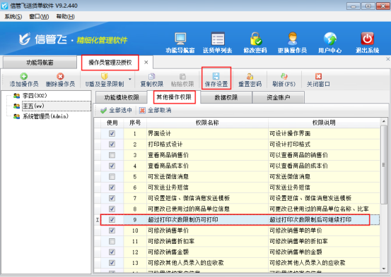信管飛送貨單軟件、信管飛RMS、信管飛倉庫管理軟件都支持設置報表的打印次數,以此來限制單據的打印次數。通過設置這個參數,可以避免開單人員開單打印后又修改單據,出現軟件中的單據內容與打印出來的單據不一樣的情況。下面我們以信管飛送貨單軟件為例演示一下具體的操作步驟。 設置報表打印次數提示: 登錄軟件,在功能導航窗點擊“系統管理”—》“系統參數設置”即可進入到“系統參數配置”界面,如下圖所示: 在業務參數界面將打印參數內“報表打印超過指定次數提示”勾選上,