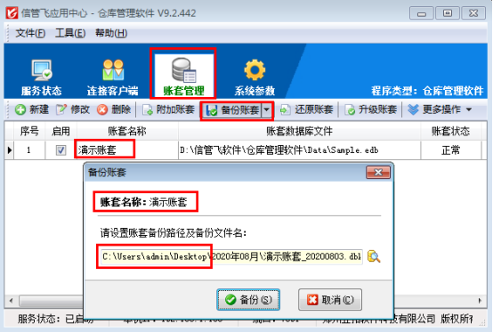 信管飛倉庫管理軟件、信管飛出納記賬軟件、信管飛RMS、信管飛送貨單軟件等都支持設置賬套自動備份,備份數據默認存儲在安裝文件目錄下的“賬套數據備份”中。軟件備份數據保留軟件所有數據,更換電腦或者重裝系統可以使用備份數據進行恢復。為避免只能安裝在電腦系統盤上的軟件重裝系統時清空軟件備份數據,軟件支持修改默認備份存儲目錄。 本文以信管飛倉庫管理軟件為例,介紹下如何修改賬套備份存儲目錄,打開應用中心程序(紅色圖標),點擊“系統參數”進入參數設置界面,選擇“賬套備份參數”,在賬套備份目錄設置中,可以修改默認目錄,如下圖1所示:圖1
