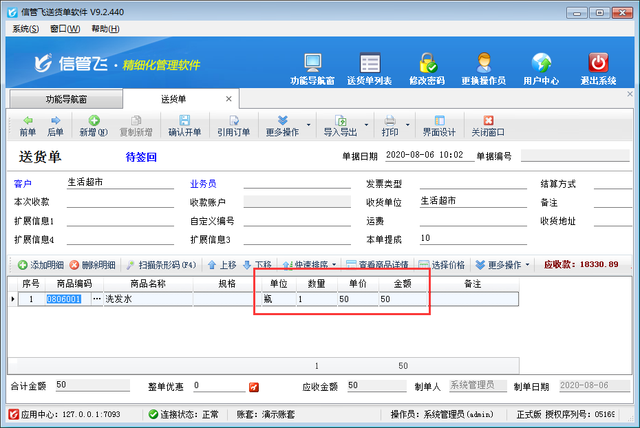 信管飛RMS、信管飛送貨單軟件等都支持開單前錄入好商品的預設價格,如預設采購價、預設售價等,方便開單選擇商品時自動獲取價格信息。如下圖所示,設置商品“洗發水”預設售價50元/瓶,以送貨單軟件為例示范一下如何設置新開送貨單時可自動取商品預設售價。 軟件支持價格優先級設置,啟用價格優先級后軟件可以自動調取我們設定的價格,可以幫助我們快速的開單,不需要手動的輸入商品的價格,節省了我們寶貴的時間,同時也提高了單據的準確性。 在功能導航窗點擊“系統管理”—》“價格優先級”進入“商品價格優先級設置