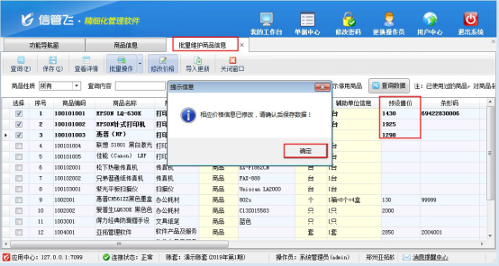 信管飛RMS軟件、信管飛送貨單軟件等都支持開單前錄入好商品的預設價格,如預設售價等,方便開單選擇商品時自動獲取價格信息。部分客戶可能后期存在商品價格上調或者下降的調整,以“信管飛RMS軟件”為例,示范下如何批量修改商品預設售價。 首先需要進人商品信息批量維護界面,在功能導航窗點擊“基礎資料”—》“商品信息”,在商品信息界面,點擊工具欄的“更多操作”,選擇更多操作下的“批量維護商品信息”,進入批量維護商品信息界面,如下圖所示: