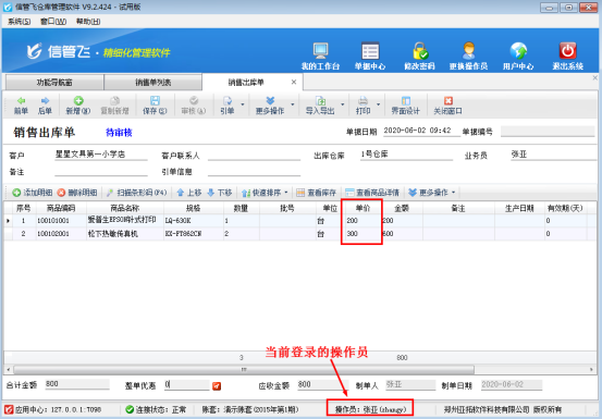 信管飛送貨單軟件、信管飛RMS、信管飛倉庫管理軟件等支持維護商品信息和商品價格信息,便于開單直接選擇商品時價格自動獲取。軟件默認開單時候價格信息允許修改,為了避免多操作員開單時出現價格修改錯誤情況,軟件支持設置操作員不可修改銷售單價的權限。以信管飛倉庫管理軟件為例,講一下如何設置操作員不可修改銷售單價。 在功能導航窗選擇“系統管理”—》“操作員及授權”,進入操作員管理及授權界面,以操作員“張亞”為例,選擇操作員后,點擊“其他操作權限”,取消勾選“可修改銷售單價”,然后保存設置,如圖1所示。圖1 &n