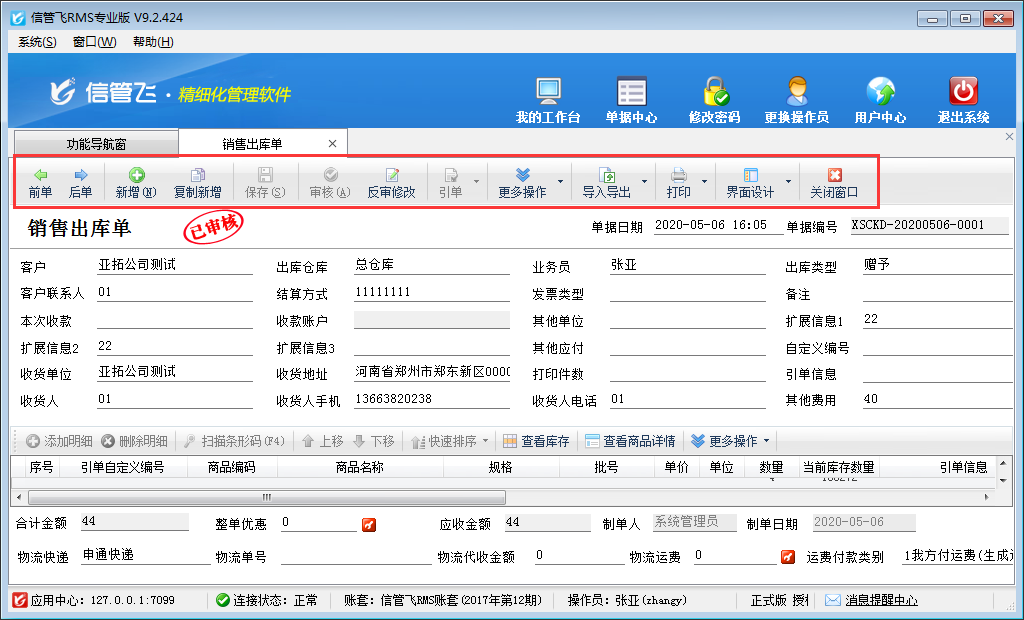 信管飛送貨單軟件、信管飛RMS、信管飛倉庫管理軟件等都支持管理基礎資料信息和允許設置多個操作員進行登錄軟件。軟件支持將基礎資料信息以EXCEL的形式導出放到自定義的文件夾內以便用戶備份或保存數據,如果需要設置操作員不允許導出商品信息,如何設置?本文以信管飛RMS專業版為例,示范下如何設置操作員不可導出商品信息。 在功能導航窗點擊“系統管理”—》“操作員及授權”打開操作員管理及授權界面,選擇操作員“張亞”,在功能模塊權限界面,選擇“基礎資料”—》“商品信息”,在導出權限下,把商品信息“導出”權限勾選取消后保存權限,如下圖所