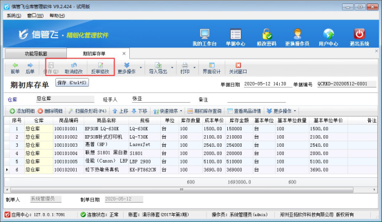 期初數據是指在軟件開賬日期之前的業務數據。期初庫存是軟件在開賬前需要先錄入好商品庫存信息。信管飛倉庫管理軟件和信管飛RMS軟件都包括“期初庫存單”,“期初庫存單”可以錄入不同倉庫、不同商品的期初庫存數量和成本單價等信息,實現了軟件在開帳前對期初庫存的高效管理。對于“期初庫存單”的使用,我們以信管飛倉庫管理軟件為例做一下介紹: 登錄倉庫管理軟件,在功能導航窗,點“基礎資料”—》“期初庫存錄入”,進入“期初庫存單”可錄入期初商品庫存(有期初庫存的倉庫和商品,需要提前在“基礎資料”錄入“倉庫信息”、“商