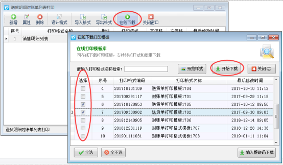 信管飛送貨單軟件、信管飛倉庫管理軟件、信管飛RMS等都支持自定義打印格式模版,軟件中內置有多個打印格式模版,并支持在線下載打印格式模版,本篇文章以信管飛送貨單軟件為例詳細介紹一下如何在線下載對賬單打印格式模版? 在功能導航窗點擊“業務處理”—》“送貨明細對賬單”即可打開送貨明細對賬單界面,如下圖所示:圖1 然后在工具欄點擊“打印”—》“打印格式設計”打開“送貨明細對賬單列表打印”窗口,如下圖所示:圖2 在打印格式設計窗口可以查看軟件內置的打印格式模版
