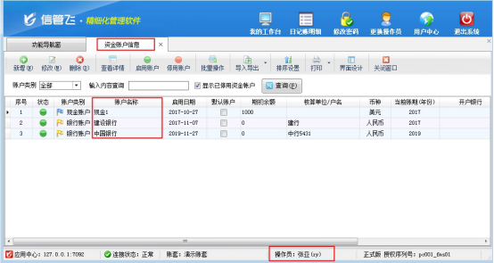 出納記賬軟件下載安裝完成后,使用演示賬套中的資金賬戶登記現(xiàn)金日記賬,在現(xiàn)金日記賬界面,點擊“查看賬簿”,可進入現(xiàn)金賬簿界面,如下圖1所示,可看到核算單位顯示:亞拓辦公用品公司,如果需要修改為自己公司信息,該如何修改?本文以“信管飛出納記賬軟件”為例,示范如何修改現(xiàn)金賬簿中的核算單位。 圖1 現(xiàn)金賬簿中的核算單位默認是調(diào)用資金賬戶提前維護好的核算單位信息,因此需要修改此內(nèi)容,需要到資金賬戶中找到當前現(xiàn)金賬戶進行修改,在功能導航窗選擇“基礎(chǔ)資料”—》“資金賬戶”,找到現(xiàn)金賬戶“現(xiàn)金1”,點擊