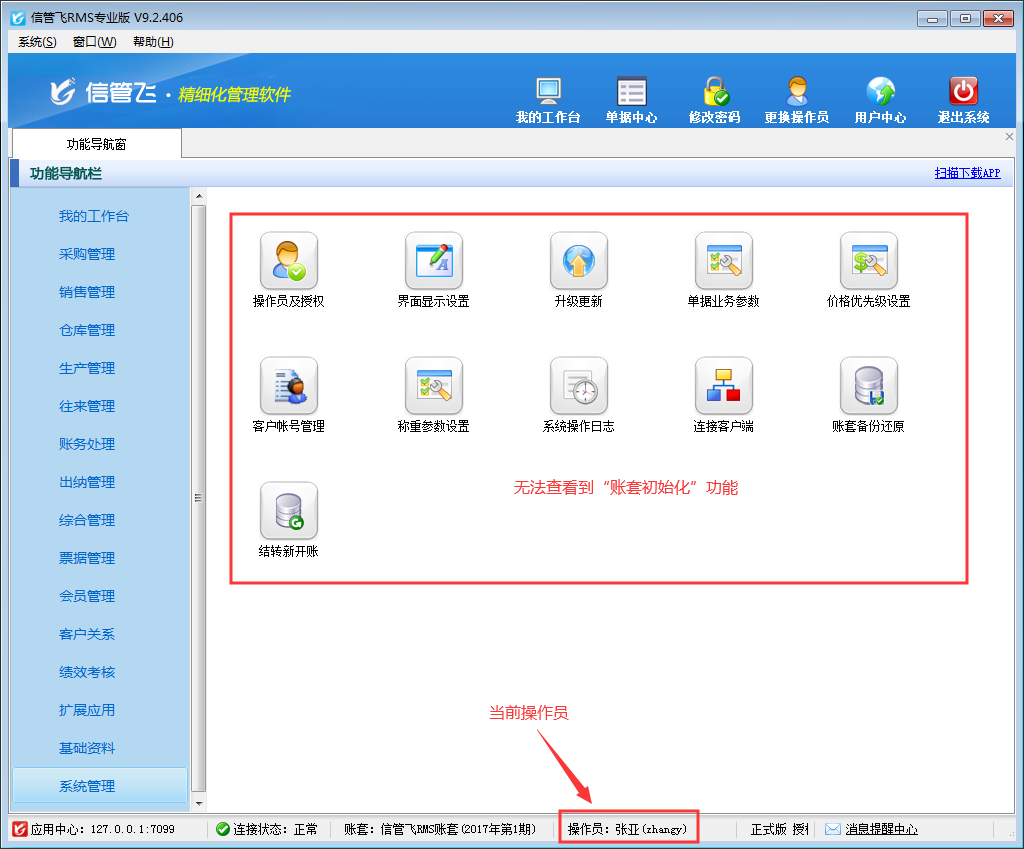 賬套初始化一般用于在正式使用軟件前,對賬套中的數(shù)據(jù)進行初始化,以便重新錄入數(shù)據(jù)。一般在試用軟件期間會輸入一些試用的數(shù)據(jù),比如采購入庫單、銷售出庫單或一些訂單等信息,當試用結(jié)束后想刪除這些無用的數(shù)據(jù)錄入正式數(shù)據(jù)時,可以通過本系統(tǒng)的“帳套初始化”功能來一次性清除,方便快捷(如下圖所示)。 執(zhí)行賬套初始化操作后,會刪除賬套內(nèi)相應(yīng)的數(shù)據(jù),因此務(wù)必提前做好備份,謹慎操作!為了避免操作員誤操作,導致數(shù)據(jù)丟失,軟件內(nèi)支持設(shè)置操作員不可進行賬套初始化操作,下面以信管飛RMS為例來演示一下具體的操作步驟。