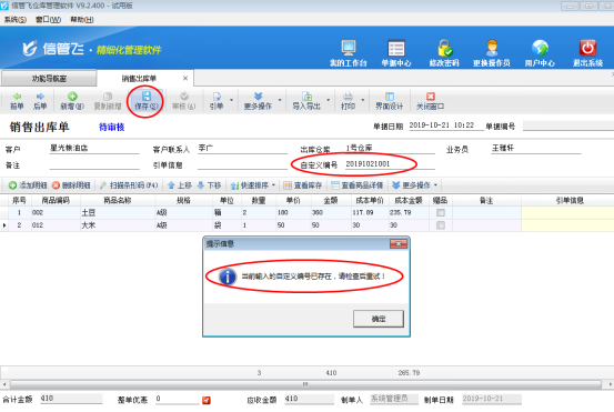 亞拓軟件自主研發的信管飛RMS、信管飛送貨單軟件、信管飛倉庫管理軟件等都支持開單后自動生成單據編號,另外,軟件也支持錄入自定義編號(不是單據編號),用戶可以在自定義編號內錄入訂單合同號等信息,為了避免錄入的自定義編號出現重復,軟件支持參數設置自定義編號不可重復。 以信管飛倉庫管理軟件為例,在“系統管理”—》“系統參數配置”—》“業務參數”內將“數據可否重復參數”中的“自定義單據編號可重復”參數的勾選取消,然后保存設置。如下圖1所示:圖1 設置完成后,打開功能導航窗的“銷售管理”—》“銷