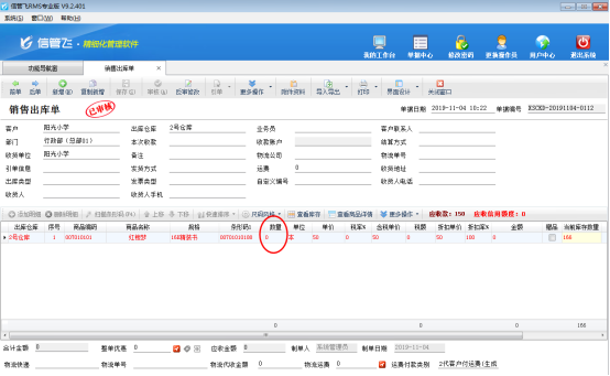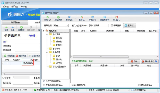 信管飛RMS(進銷存管理軟件)、信管飛送貨單軟件、信管飛倉庫管理軟件內都可以設置開單時業務單據明細數量允許為0,本篇文章以信管飛RMS為例介紹在軟件內如何設置業務單據明細數量允許為0? 在功能導航窗點擊“系統管理”——》“系統參數配置”——》“業務參數”可以進入到“業務參數”配置界面,在業務單據明細參數內打勾啟用“業務單據明細數量允許為0”參數,如下圖1所示。圖1 系統參數設置界面 設置完成之后,在功能導航窗點擊“銷售管理”——》“銷售出庫單”,新增銷售單,添加商品“紅樓夢”,數量錄入