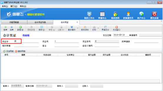 信管飛RMS(進銷存ERP軟件)是基于自主研發(fā)的亞拓基礎(chǔ)應(yīng)用平臺開發(fā)的企業(yè)ERP軟件(精細(xì)化管理軟件、進銷存管理軟件、記賬軟件),包括采購管理、銷售管理、庫存管理、往來賬管理、財務(wù)管理、出納管理等業(yè)務(wù)管理功能。財務(wù)處理模塊可以登記會計憑證,軟件支持對會計憑證設(shè)置默認(rèn)憑證字。下面以信管飛RMS專業(yè)版為例介紹一下如何對會計憑證設(shè)置默認(rèn)憑證字。 登錄軟件,在功能導(dǎo)航窗點“財務(wù)處理”—》“會計憑證”,然后打開新增會計憑證界面,點擊憑證字后面的“...”按鈕,如下圖所示:圖1 系統(tǒng)彈出“會計憑證