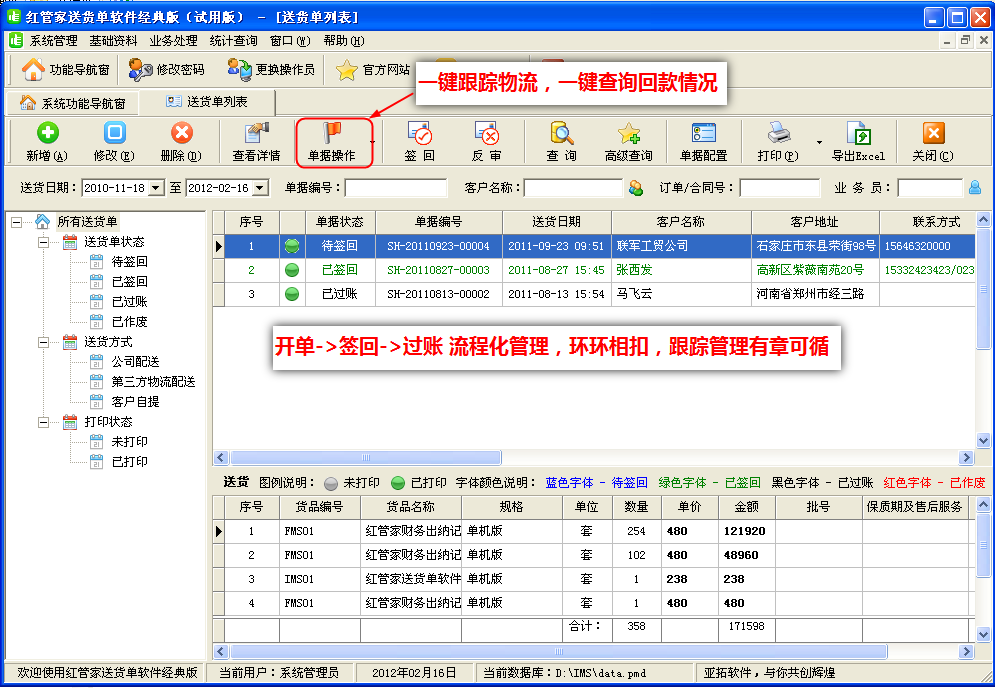 送貨管理 收款對賬 就用紅管家送貨單打印軟件
