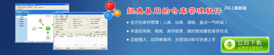 紅管家倉(cāng)庫(kù)管理系統(tǒng)是亞拓軟件開發(fā)的專門針對(duì)工廠中的材料采購(gòu)入庫(kù)、生產(chǎn)發(fā)料領(lǐng)料,批發(fā)零售公司的商品采購(gòu)入庫(kù)、出庫(kù)記帳等業(yè)務(wù),而開發(fā)的倉(cāng)庫(kù)及貨物管理軟件,系統(tǒng)主要包括采購(gòu)訂單、采購(gòu)入庫(kù)單、采購(gòu)?fù)素泦巍N售訂單、銷售出庫(kù)單、銷售退貨單、生產(chǎn)領(lǐng)料單、生產(chǎn)退料單、成品入庫(kù)單、倉(cāng)庫(kù)調(diào)撥單、盤點(diǎn)報(bào)盈單、盤點(diǎn)報(bào)損單等業(yè)務(wù)單據(jù)管理,提供了豐富的采購(gòu)、銷售、庫(kù)存報(bào)表,更多功能,請(qǐng)下載體驗(yàn)!&